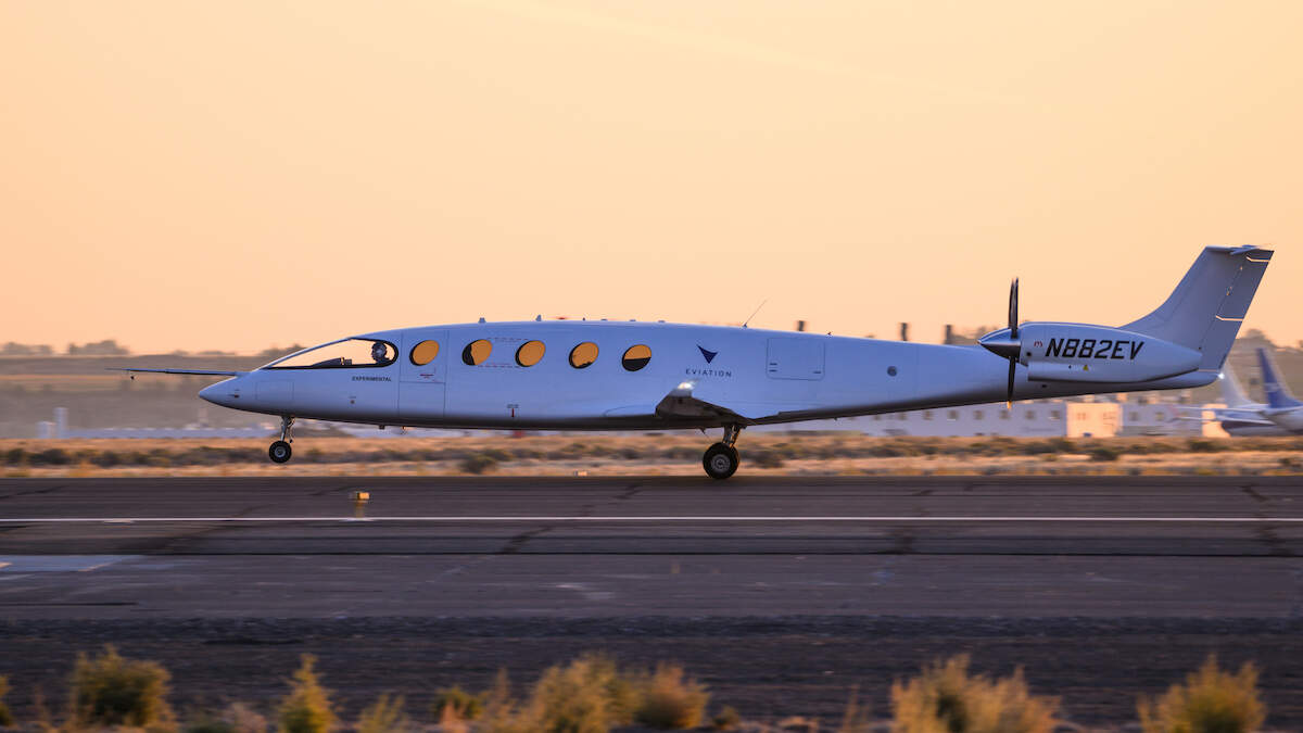 Alice, which is capable of carrying nine passengers and two pilots, was designed and built by Eviation, an Arlington, Washington based startup, in an effort to showcase the potential of an all-electric commercial commuter aircraft for travel between cities at an estimated altitude of 15,000 feet.